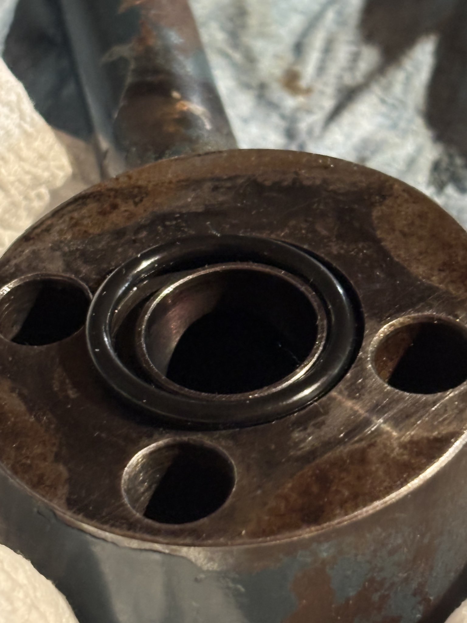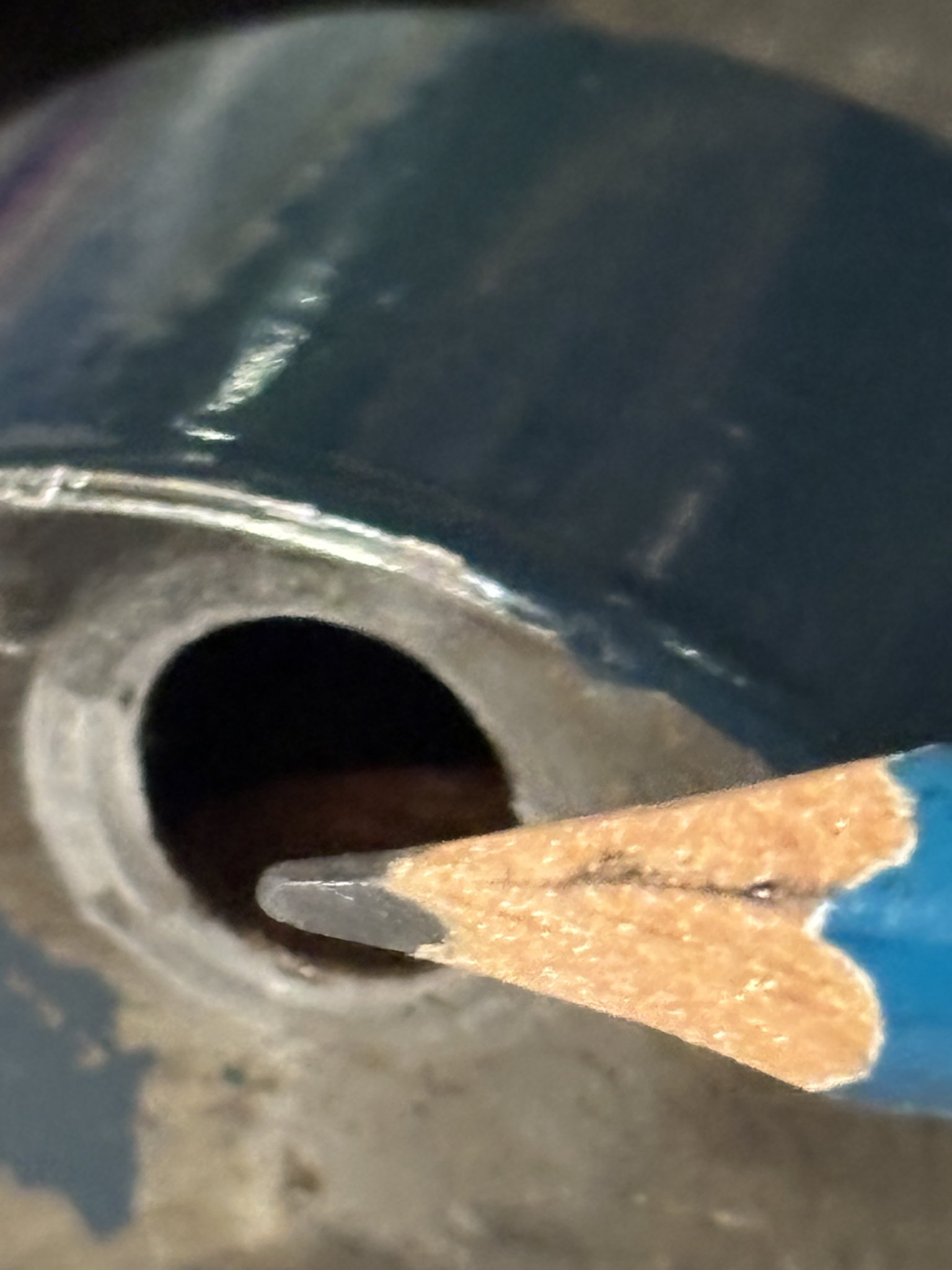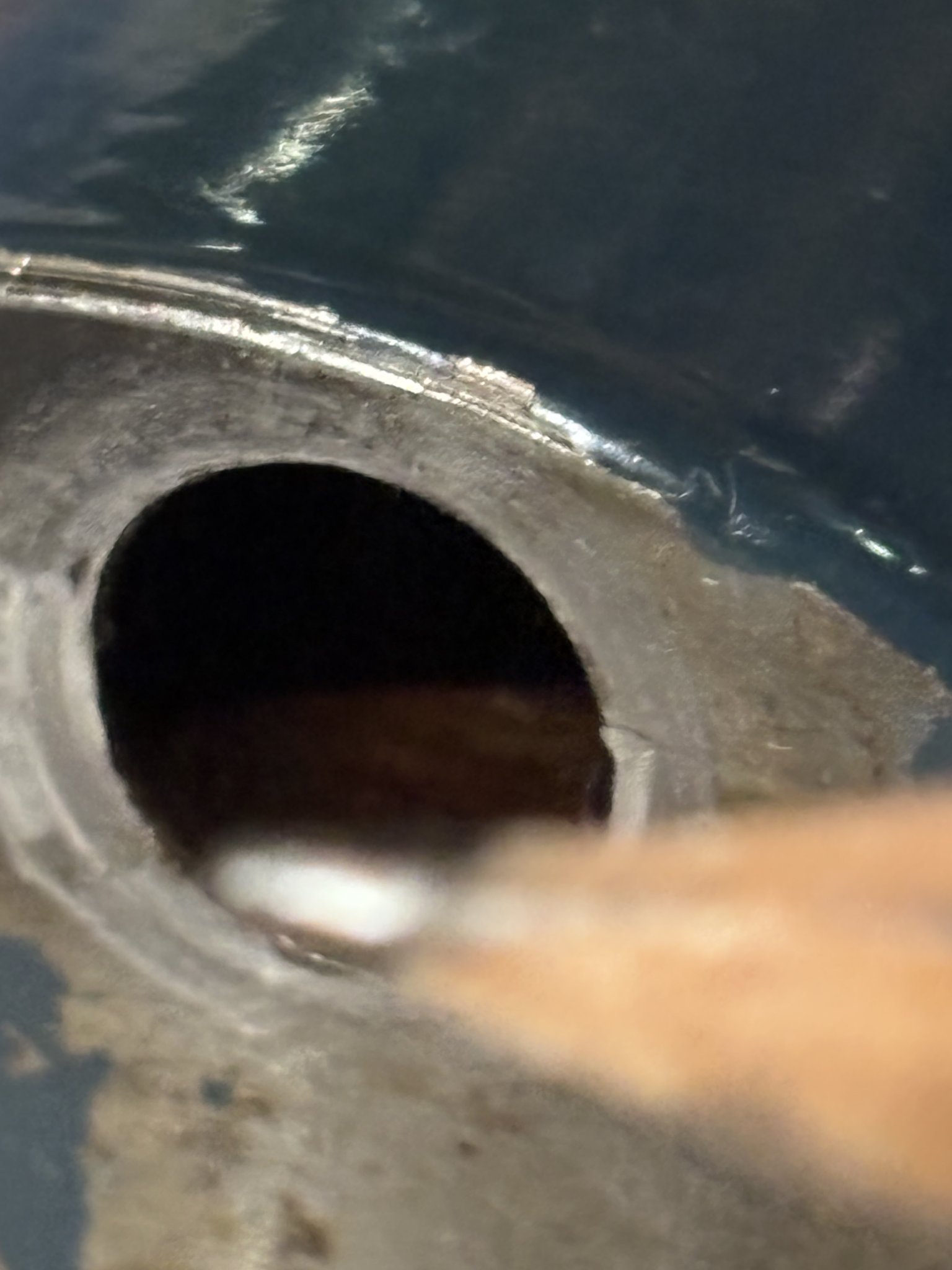 @TheOldHokie thinks is suspected crack but that just looks like pooled oil with light reflecting off it now.